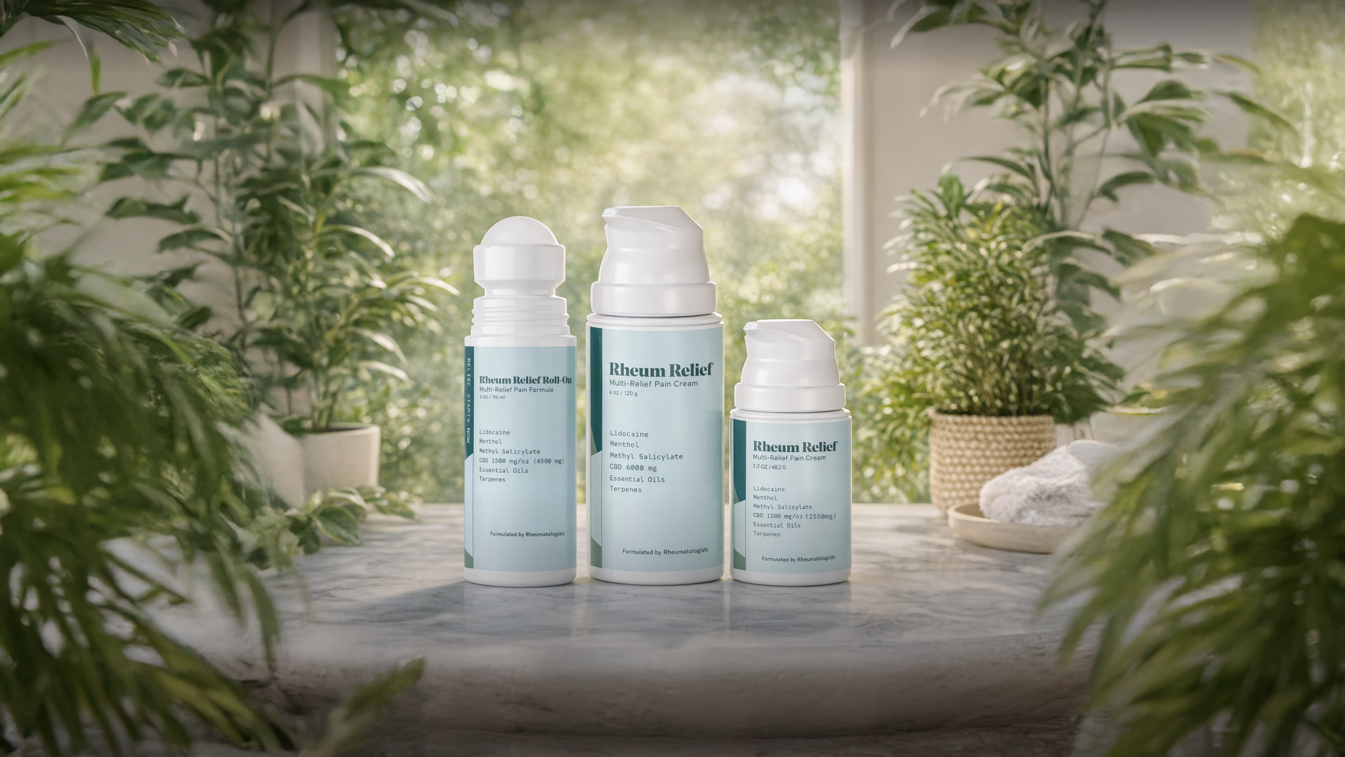 Rheum Therapeutics proudly formulates its products with a thoughtful combination of clinically proven active ingredients and naturally derived botanicals. Rheum Relief Multi-Pain Cream, Rheum Relief Roll-On, and Rheum Relax Soaking Salts are crafted to deliver effective pain relief and topical calming of sore joints and muscles while being gentle on your skin, using plant-based extracts and soothing essential oils to complement their powerful pain-soothing agents.